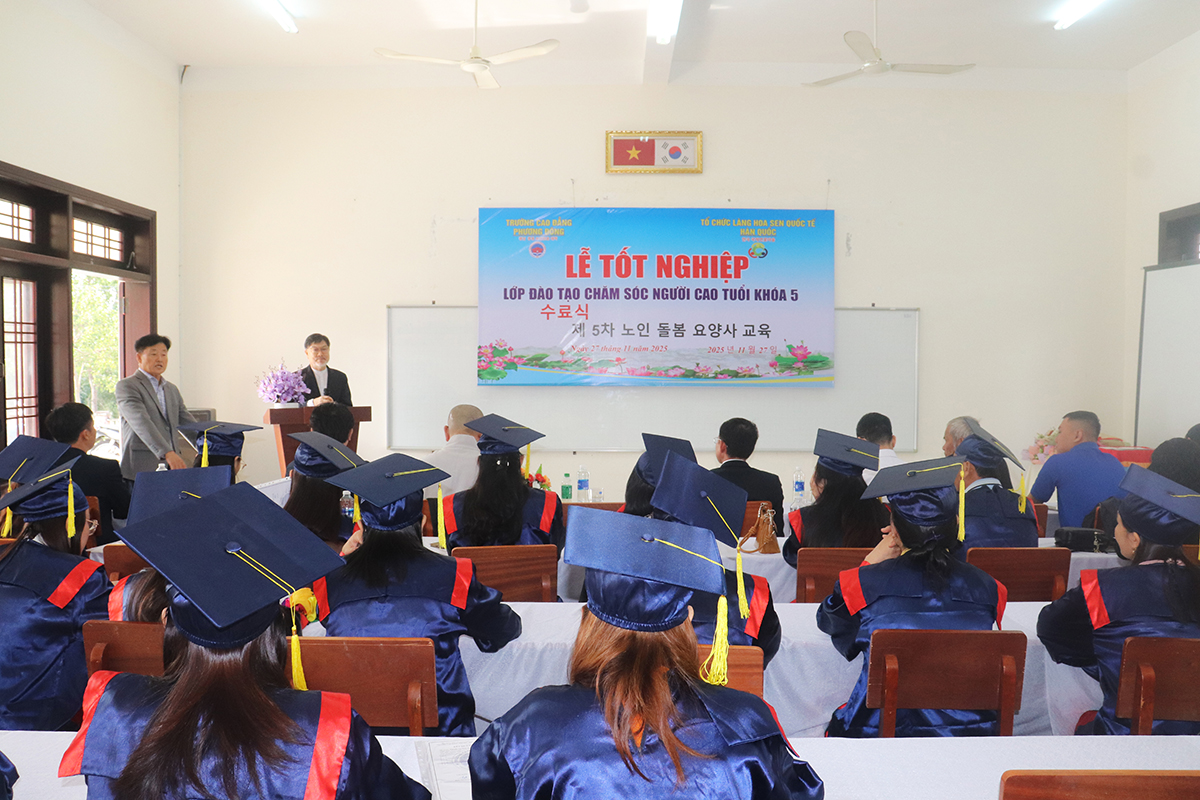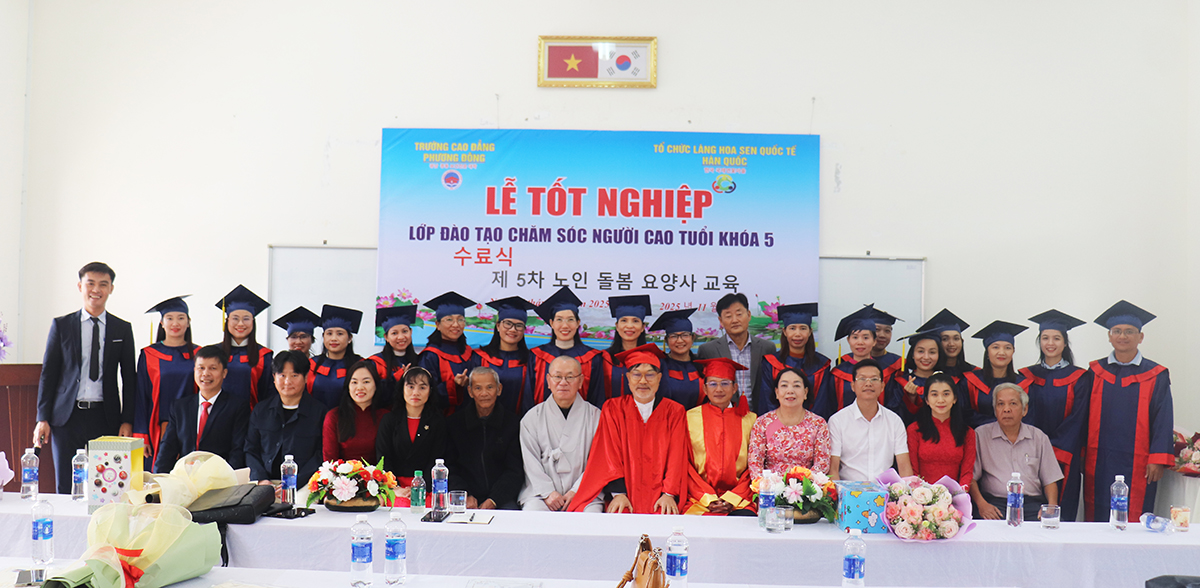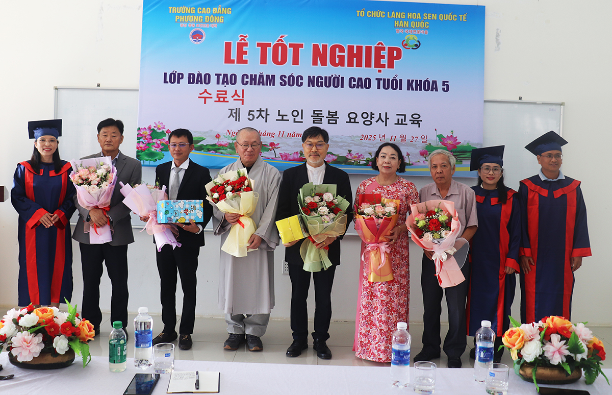 Ngày 27/11/2025, Trường Cao đẳng Phương Đông long trọng tổ chức Lễ bế giảng Lớp đào tạo sơ cấp Chăm sóc người cao tuổi – Khóa 5 tại hội trường Làng Hoa sen quốc tế Hàn Quốc (phường Quảng Phú, TP. Đà Nẵng). Chương trình được triển khai trong khuôn khổ hợp tác giữa Trường Cao đẳng Phương Đông và Làng Hoa Sen Quốc tế Hàn Quốc, nhằm đào tạo nguồn nhân lực chất lượng cao trong lĩnh vực chăm sóc sức khỏe cộng đồng.