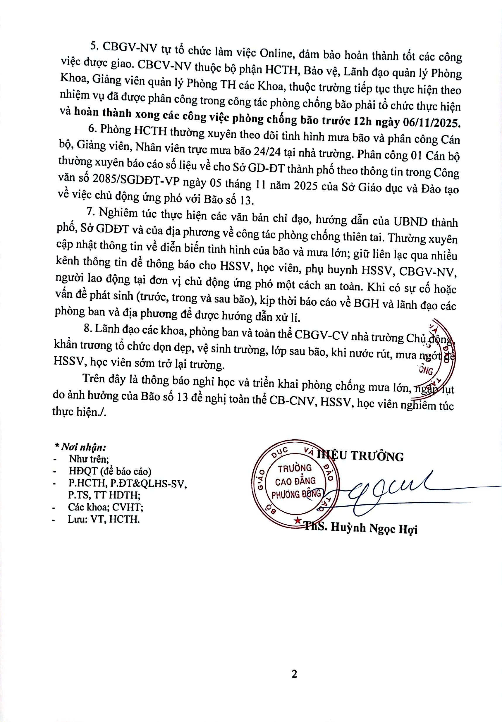 • Toàn bộ HSSV các hệ, các lớp nghỉ học trực tiếp từ chiều ngày 06/11/2025 cho đến khi có thông báo mới.
